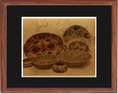 Pima Baskets Framed 12 x 15 matted, glass and framed in solid oak. ready for hanging.