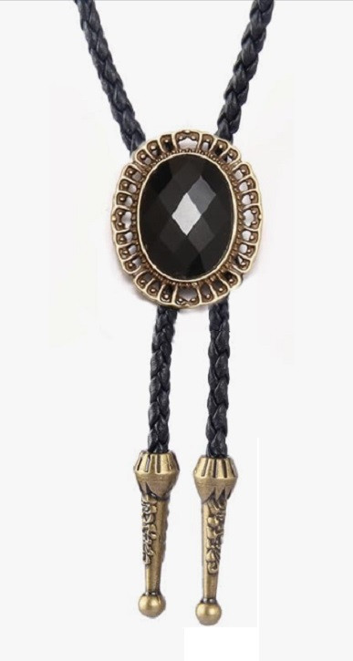 Vintage Style Frame with Black Onyx Diamond Style Cut Stone Bolo Tie. Adjustable Black Cord